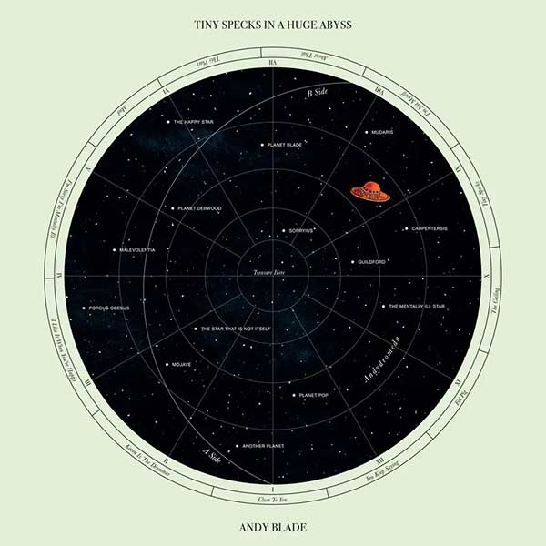 Punk pioneer/Eater main-man, Andy Blade’s 7th solo album and follow up to 2024’s critically acclaimed and heavily rotated, Sparks bros endorsed Being Alive Is Fun. It is imbued with the usual left-of-centre Blade-ism’s and themes: star maps, UFO’s & a slightly twisted nod to tragic 70’s heroine Karen Carpenter. You get what you deserve with Blade, and with Tiny Specks you are rewarded with a rich code to decipher at your leisure. Most of all, however, it is all about the quality of his songwriting.