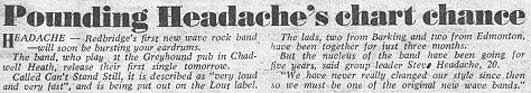 As the news clipping below shows, Headache had its origins years earlier and like a lot of other bands of the time claimed they were playing new wave style music long before it became know as new wave! Headache were actually The Electrodes up until the release of their only single record.