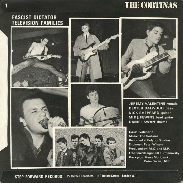 The Cortinas were an incredibly young Bristol band with an average age of 16 who chose the name coz it sounded cheap and nasty! Originally an r’n’b band, but embraced the punk sound gruffing up the vocals and revving up the guitars. Two essential singles on Step Forward –  Fascist Dictator (1977) and Defiant Pose (1978 ).
