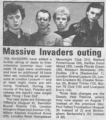 Polydor Press Release 1979 Born into the confusion of 1978 it’s no real surprise that the first concerts of the Invaders betrayed an incoherent but nevertheless exciting disordered mixture of influences and styles.