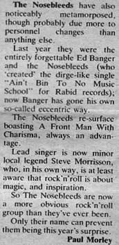 Ed Banger Me and Vini Riley didn’t like the way the band was being run so we opted out and started our solo projects. There was a whole set full of Nosebleeds songs ready to record but we never got there. There’s a tape knocking about of a live session we did for Piccadilly Radio in Manchester and there’s a video we did with a video workshop with live footage and interviews about the rise and fall of the Nosebleeds. Someone should put it out. Punk77 Interview