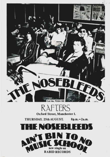 Ok so why all the fuss over The Nosebleeds; a band that released one single? Simple. Like The Killjoys and Users there’s more to the story than just a song. Edmund Garrity AKA Ed Banger’s story criss crosses through vital moments in punk in Manchester that features bands like Slaughter & The Dogs and personalities like Billy Duffy and Morrissey that makes it impossible to ignore and at times so improbable that a film script could or should be made.